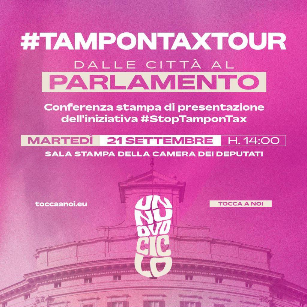 Ce l’abbiamo fatta il #tampontaxtour arriva in parlamento. Martedì 21 Settembre ore 14:00, alla sala stampa della camera dei deputati, verrà presentata l’iniziativa Stop Tampon Tax. Questo è stato possibile grazie all’associazione Tocca a Noi e all’immenso lavoro di Laura Sparavigna e Lucrezia Lurlaro che questa estate hanno girato tutta Italia per raccogliere adesioni e supporto. Siamo immensamente orgogliosi di aver fatto parte di questa onda che ha travolto tutto il paese.