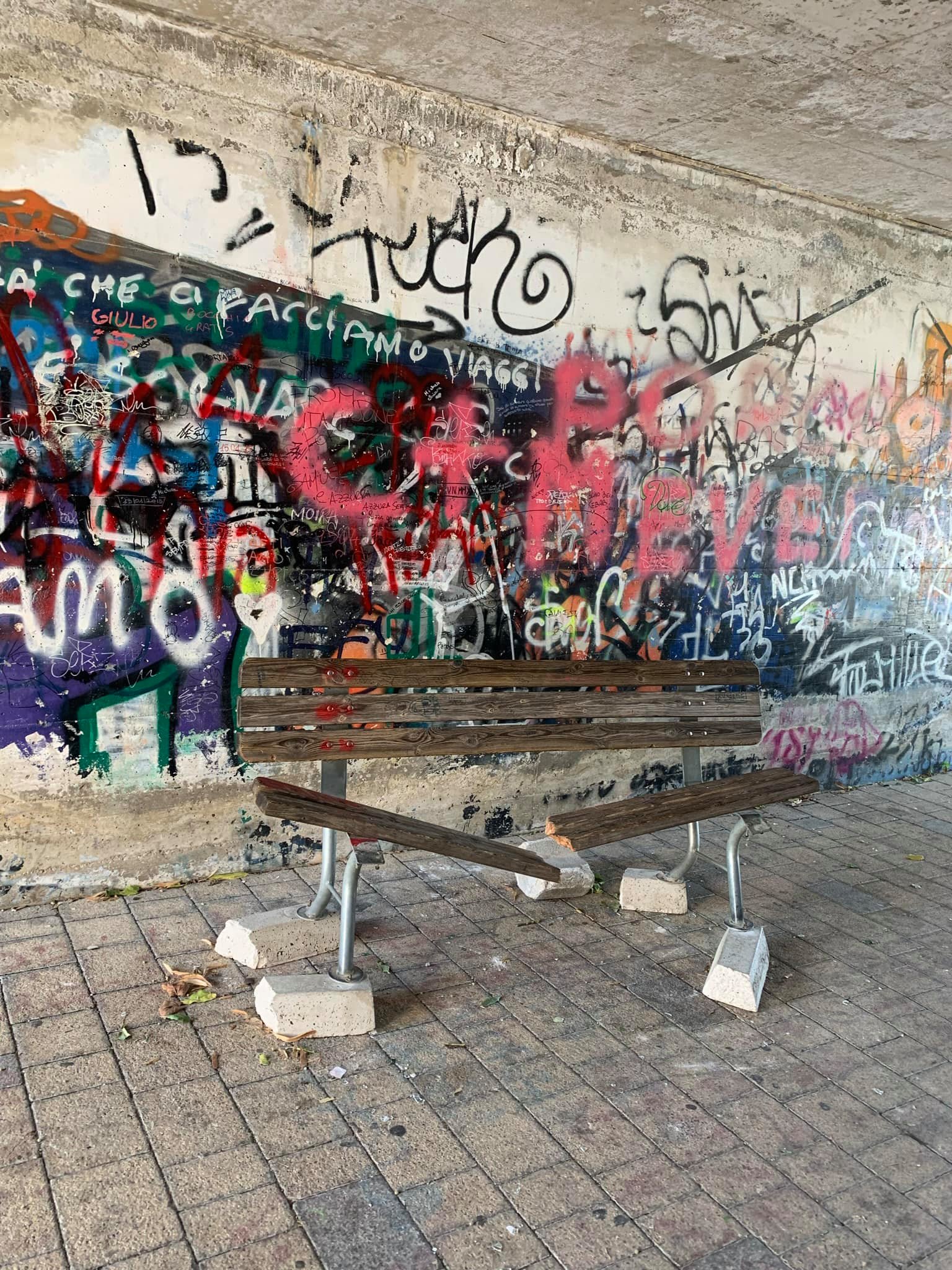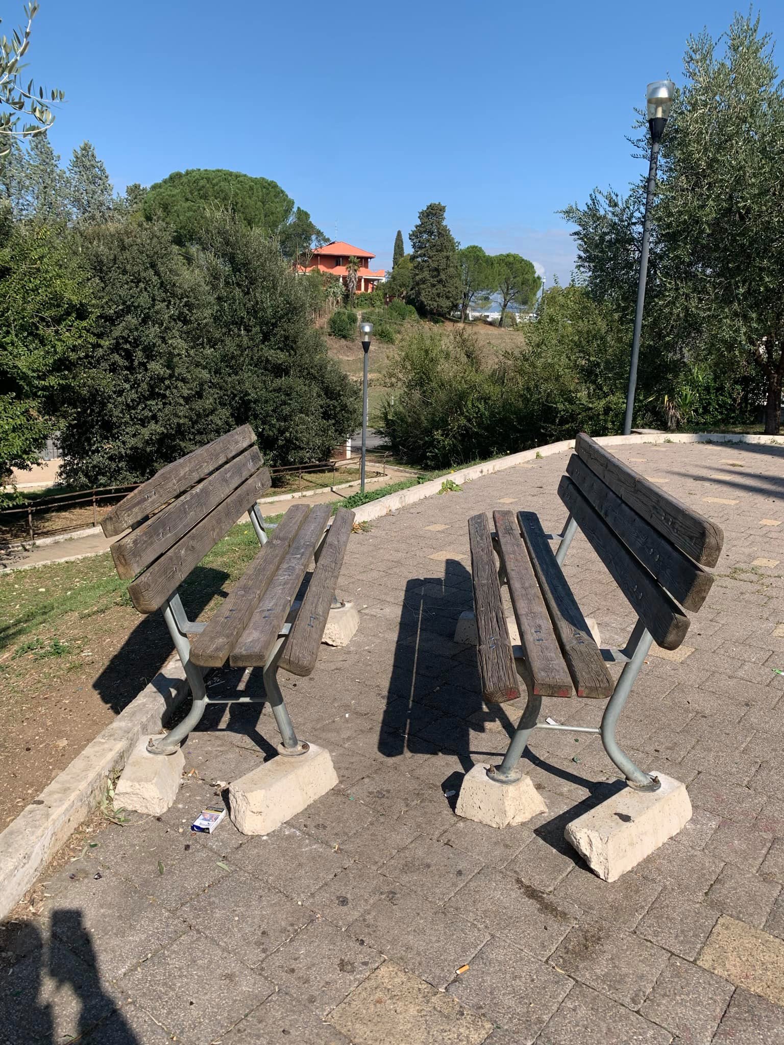 𝐈𝐧𝐬𝐭𝐚𝐥𝐥𝐚𝐳𝐢𝐨𝐧𝐢 𝐚𝐫𝐭𝐢𝐬𝐭𝐢𝐜𝐡𝐞 𝐭𝐞𝐦𝐩𝐨𝐫𝐚𝐧𝐞𝐞 𝐚 𝐏𝐚𝐬𝐬𝐨 𝐂𝐨𝐫𝐞𝐬𝐞. Non è il massimo della sicurezza per una piazza frequentata da bambini. Le panchine stanno così da molto tempo credo sia arrivato il momento di intervenire.
