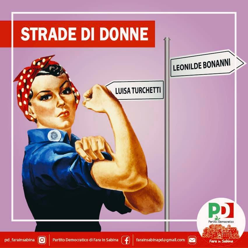 In Italia la media di strade intitolate a donne va dal 3 al 6% (in prevalenza madonne e sante), mentre quella delle strade dedicate agli uomini si aggira sul 40%. A Fara in Sabina le statistiche subiscono un brusco calo: le vie dedicate a donne sono soltanto il 2% del totale, per le sante, madonne e beate il tasso sale al 5%.