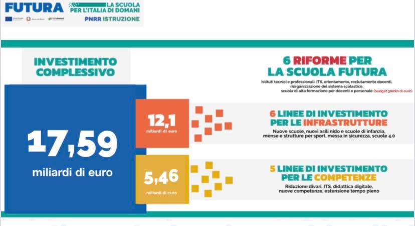 Qualche giorno fa sono stati pubblicati sul sito del Ministero dell’Istruzione alcuni bandi e avvisi pubblici per la 𝐦𝐞𝐬𝐬𝐚 𝐢𝐧 𝐬𝐢𝐜𝐮𝐫𝐞𝐳𝐳𝐚 𝐝𝐞𝐥𝐥𝐞 𝐬𝐜𝐮𝐨𝐥𝐞, 𝐥𝐚 𝐜𝐨𝐬𝐭𝐫𝐮𝐳𝐢𝐨𝐧𝐞 𝐝𝐢 𝐬𝐜𝐮𝐨𝐥𝐞 𝐩𝐫𝐢𝐦𝐚𝐫𝐢𝐞 𝐞 𝐚𝐬𝐢𝐥𝐢 𝐧𝐢𝐝𝐨 e la sistemazione di scuole esistenti per un totale di 5,2 miliardi (un terzo dei 17,59 miliardi che il PNRR destina all’istruzione e formazione). Insieme al PNRR, il MIUR ha da poco emanato sei riforme e undici linee guida nel suo programma 𝐅𝐮𝐭𝐮𝐫𝐚 – 𝐥’𝐈𝐭𝐚𝐥𝐢𝐚 𝐩𝐞𝐫 𝐥𝐚 𝐬𝐜𝐮𝐨𝐥𝐚 𝐝𝐢 𝐝𝐨𝐦𝐚𝐧𝐢 ( https://pnrr.istruzione.it/); ammodernamento delle infrastrutture, ammodernamento tecnologico, reclutamento e formazione dei docenti: questi i temi principali. I bandi e gli avvisi pubblici riguardano anche l’incremento di mense e palestre, per la riqualificazione del patrimonio edilizio scolastico. In un comune in cui negli anni abbiamo visto scuole chiudere come a Corese Terra, asili abbandonati al proprio destino come l’ex asilo di Talocci, palestre spesso poco agibili, aule prese in affitto, classi spostate in dei container e soprattutto scarse dotazioni tecnologiche o scuole green, cerchiamo di non perdere questa occasione.