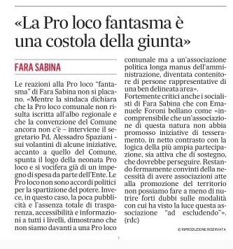 Dichiarazioni del Partito Democratico sulla vicenda della Pro Loco Comunale Pubblicato daFarainsabinapd2 giugno 2022Pubblicato in: Senza categoriaTag:Pd2022 Condividi: Condividi su X (Si apre in una nuova finestra) X Condividi su Facebook (Si apre in una nuova finestra) Facebook Mi piace Caricamento... Correlati
