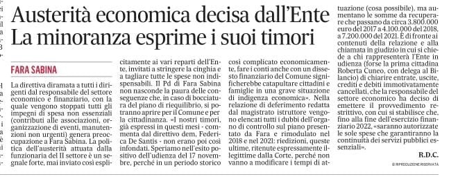 “I nostri timori già espressi in questi mesi non erano poi così infondati. Speriamo nell’esito positivo dell’udienza del 17 novembre perché in un periodo storico così complicato economicamente, fare i conti anche con un dissesto finanziario del comune significherebbe catapultare i cittadini e le famiglie di Fara in una grave situazione di indigenza economica”