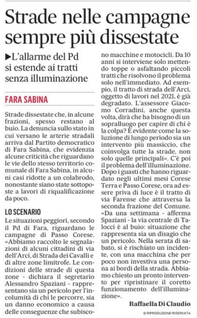 🗞️ Le nostre dichiarazioni oggi sul Messaggero riguardanti lo stato di alcune strade del nostro Comune per cui chiediamo un intervento: