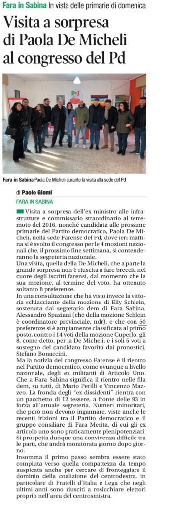 Spaziani “ll congresso un successo, ci vediamo il 26 per le primarie” Pubblicato daFarainsabinapd19 febbraio 2023Pubblicato in: Senza categoriaTag:Pd2023 Condividi: Condividi su X (Si apre in una nuova finestra) X Condividi su Facebook (Si apre in una nuova finestra) Facebook Mi piace Caricamento... Correlati