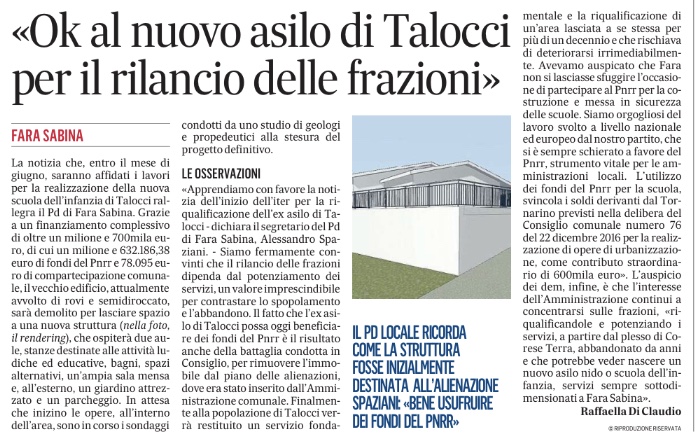 Pd Fara in Sabina “Bene la scuola a Talocci, ora Corese Terra” Pubblicato daFarainsabinapd12 aprile 2023Pubblicato in: Senza categoriaTag:CoreseTerra, Pd2023, talocci Condividi: Condividi su X (Si apre in una nuova finestra) X Condividi su Facebook (Si apre in una nuova finestra) Facebook Mi piace Caricamento... Correlati
