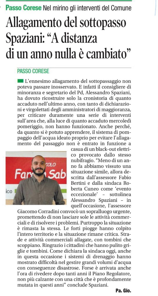 Come dichiara la Sindaca oggi, anche in questa occasione i sistemi di drenaggio hanno mostrato difficoltà nel gestire grandi volumi d’acqua, portando a allagamenti e inondazioni con conseguenze disastrose per le nostre comunità. A distanza di un anno e alla prima occasione critica.
